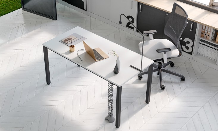 Univerzální a plně funkční stoly jednoduchého designu vytvářejí esteticky příjemný a efektivní pracovní prostor splňující rozmanité potřeby uživatelů.