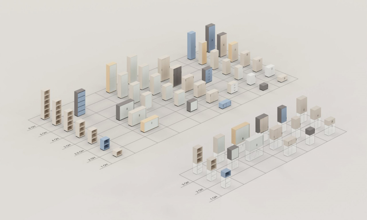 Všestrannost nábytkového systému K40 umožňuje flexibilní přizpůsobení individuálním potřebám a požadavkům jakékoli kanceláře, což znamená maximální využití prostoru, profesionalitu a pracovní komfort pro všechny uživatele. Rozmanitost variant kancelářských skříněk V řadě K40 najdete řadu variant skříněk, které uspokojí všechny potřeby úložného prostoru.