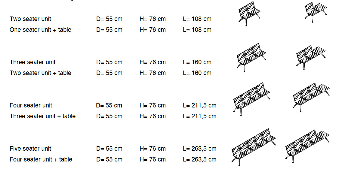Sedáky lavic ULISSE jsou robustní, snadno se čistí a udržují. Jsou ideální pro konferenční místnosti, čekárny a odpočinkové zóny, městskou infrastrukturu (čekárny na vlakových nádražích, letištích, autobusových terminálech, v nemocnicích atd.); komerční prostory (lavičky v obchodech s obuví, čekárnách v cestovních kancelářích, realitních kancelářích nebo pojišťovnách atd.).