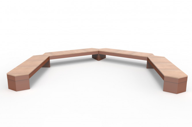 Nepravidelný obdélníkový sedák laviček umožňuje různé volné kompozice. Dalším volitelným doplňkem je boční zásuvka s USB, nízkonapěťové připojení a LED.
