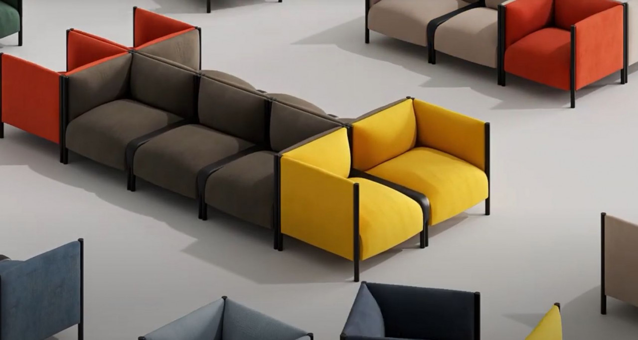 Kolekce modulárních pohovek a křesel Waffle představuje krychlový tvar a pravidelné, přesné geometrické tvary. Vnitřek sezení nicméně nabízí měkce tvarované čalounění, které je velmi pohodlné.