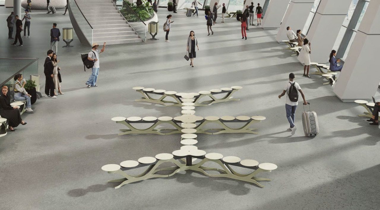 Sezení Edera může být volně stojící, samonosná, pohyblivá nebo s upevněním k podlaze pro maximální stabilitu a bezpečnost. USB porty pro nabíjení mobilních zařízení jsou k dispozici na vyžádání.