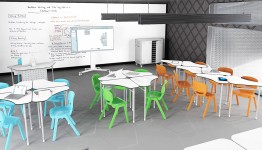 sklopný kancelářský stůl na kolečkách TAM TAM Tra design_Studio Arter Citton Ať už v kanceláři nebo ve škole, stále častěji se stává, že v jednu chvíli sedíme u pracovního stolu a v další chvíli jsme na schůzce s kolegy. Potřebu střídat individuální práci se skupinovým sdílením kancelářského prostoru řeší jedinečný sklopný stůl Tam Tam TRA: ergonomický stůl s multifunkčním designem, který se rychle a bez námahy pohybuje na kolečkách. Evoluce stolu TAM TAM TRA spočívá v lichoběžníkovém tvaru desky, díky kterému lze z několika stolů vytvořit sadu snadno přestavitelných stolů, a to v nových, teplejších a příjemnějších 3D povrchových úpravách stolových desek.Další tvary stolových desek nabízí základní řada stolů Tam Tam. Tento Inovativní kancelářský stůl se vyznačuje barvami, které vyhovují i tomu nejminimalističtějšímu vkusu, v klasických odstínech černé, šedé a bílé a v jasnějších...
