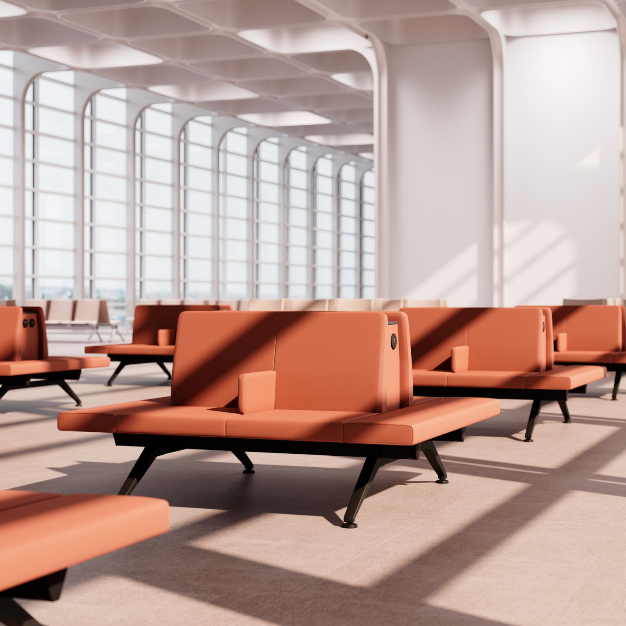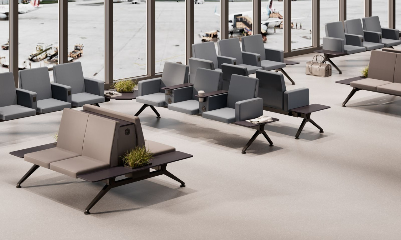 Lavice a křesla pro čekárny V-Travel poskytují dostatečnou kapacitu sezení bez kompromisů v designu, bezpečnosti, z hlediska požární ochrany, hygieny a pohodlí, se zvláštním důrazem na nabíjení elektronických zařízení. V-Travel od Justuse Kolberga, zaměřený na segment trhu Doprava obecně, je nejnovější generací veřejného sezení.