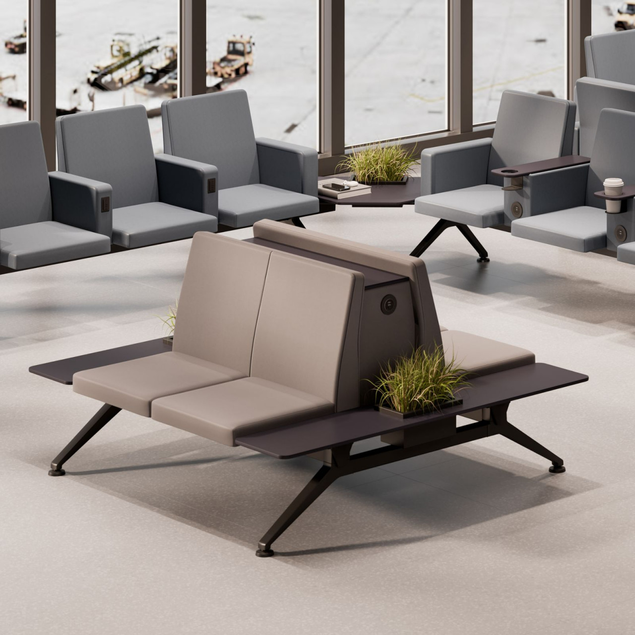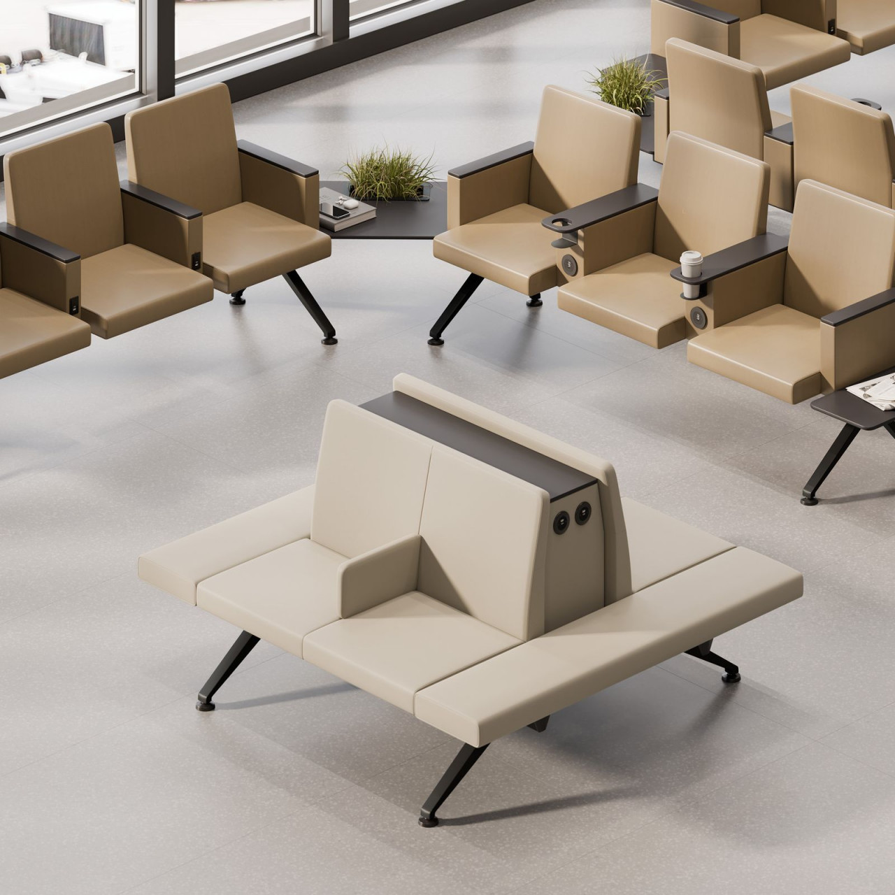 Modulární řada měkkých sedadel, která nabízí možnost vytváření extrémně všestranných konfigurací bez ohledu na velikost prostoru. Genaya se dokonale hodí do čekáren ve veřejných prostorách, terminálech pro cestující nebo zdravotnických zařízeních. Ať už je to krátce před nástupem do letadla nebo dlouhé čekání mezi lety – všichni cestující rádi navštěvují relaxační prostory. Ať už se chtějí uklidnit, tiše si číst nebo si dokonce zdřímnout – tyto relaxační prostory jsou tu proto, aby uspokojily jejich potřeby.