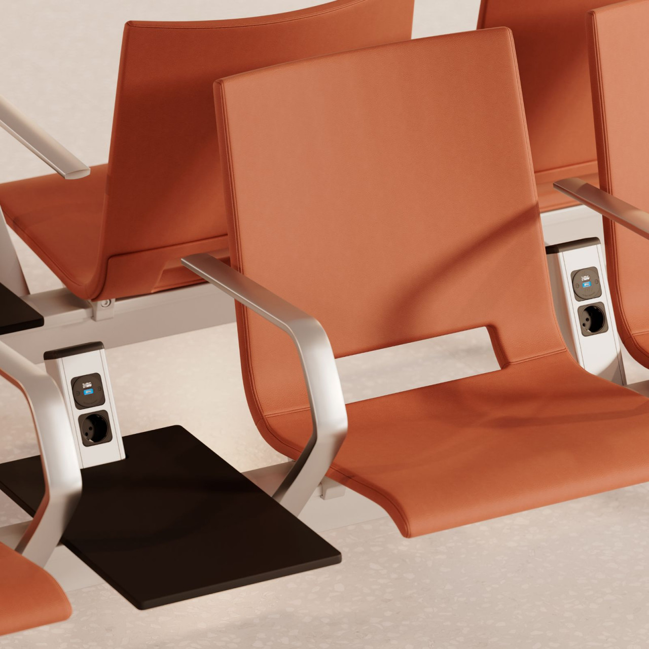 Protipožární ochrana Všechny prostory vybavené produkty s konceptem protipožární ochrany poskytují větší bezpečnost v případě požáru. Bez nutnosti kompromisů v oblasti designu a pohodlí. Nabíjení mobilních zařízení Ať už se jedná o chytrý telefon, tablet nebo notebook – napájecí a datové moduly zabudované v konfiguracích lavic a sedacích soupravách jsou ideální pro rychlé nabíjení při používání kapesních zařízení. Například s moduly vybavenými zásuvkami specifickými pro danou zemi pro obecné napájení a moderními rozhraními, jako je USB 3.0. Napájecí a datové moduly jsou vyměnitelné.
