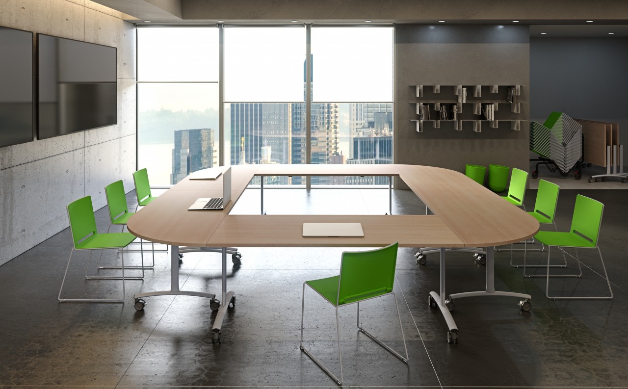 Profesionální zasedací místnost s Archimede stoly prakticky a efektivně.