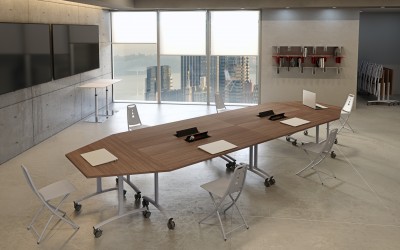 Použitím mobilních skládacích stolů Archimede můžete vytvořit snadno a rychle elegantní a funkční pracovní prostory. Velké množství tvarů, rozměrů a povrchových úprav umožňuje použít stoly Archimede do všech prostorů, jako jsou zasedací a konferenční místnosti, kanceláře, učebny, jídelny, přednáškové sály atd. Stoly Archimede je možno spojovat do požadovaných sestav speciálními nylonovými konektory.