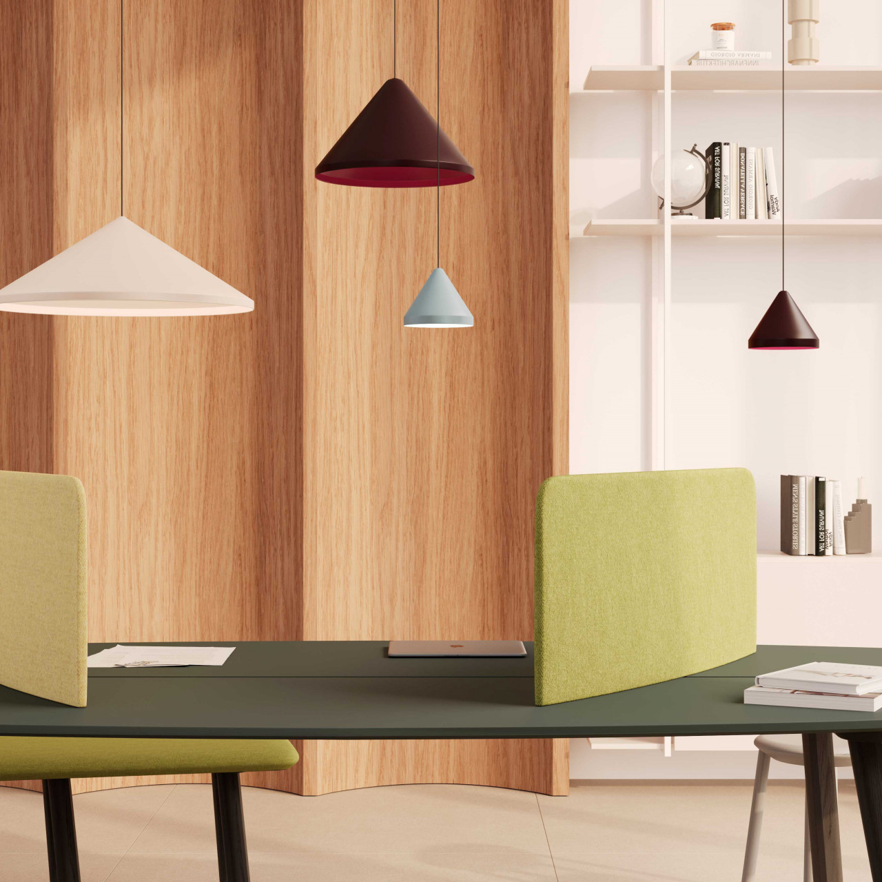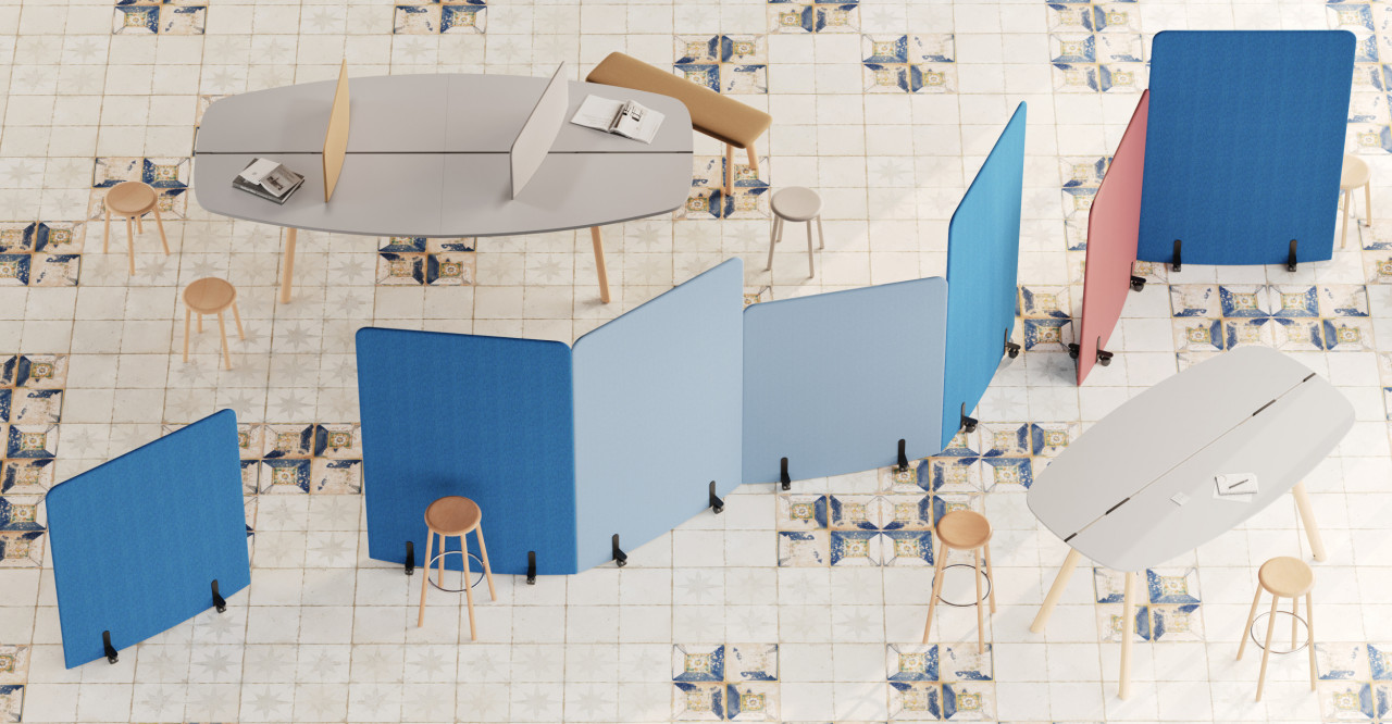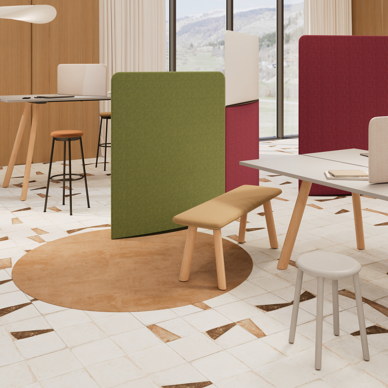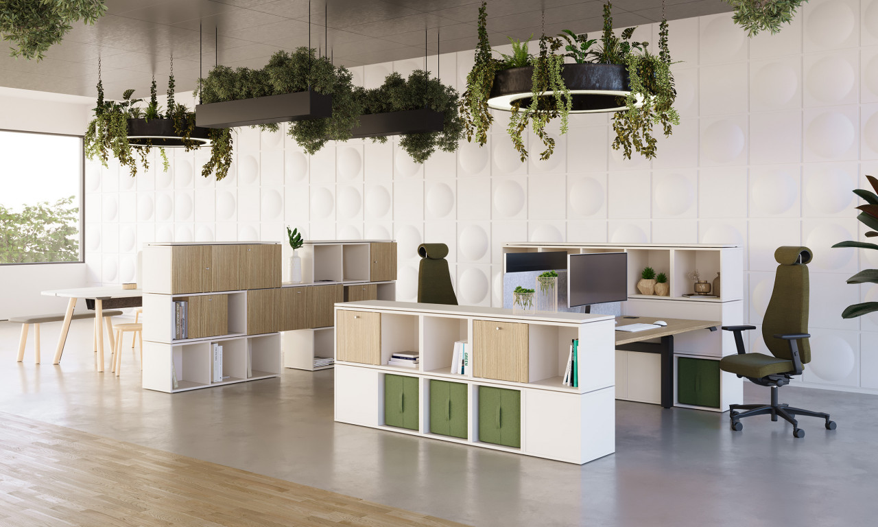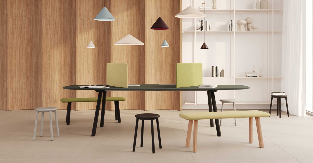 Všechny funkční prvky, jako jsou kabelové svody, akustické panely a elektrifikace, je přizpůsobena mezeře uprostřed desky stolu. Stoly poskytují vše, co by člověk v kanceláři mohl potřebovat, a zároveň se nezapomnělo na jednu z nejdůležitějších věcí: pocit domova.