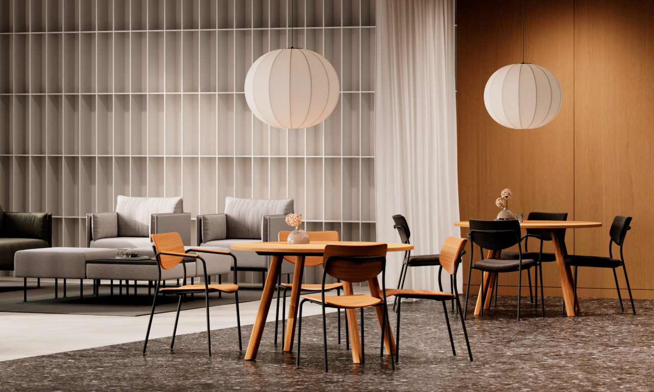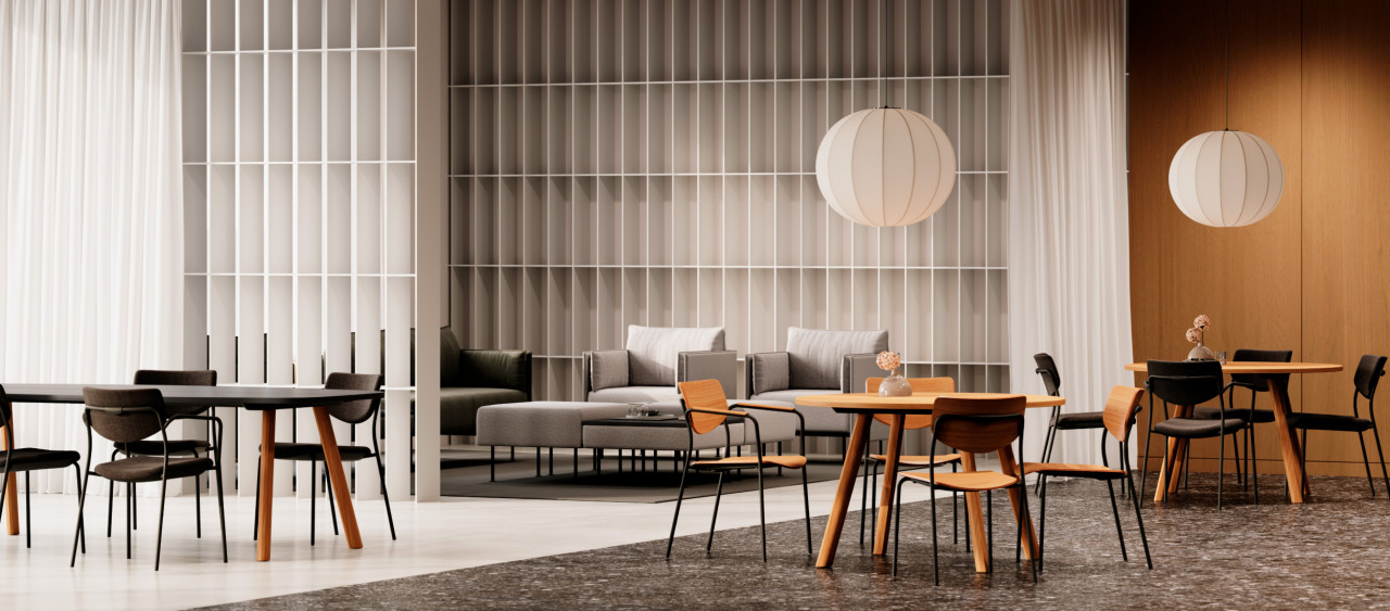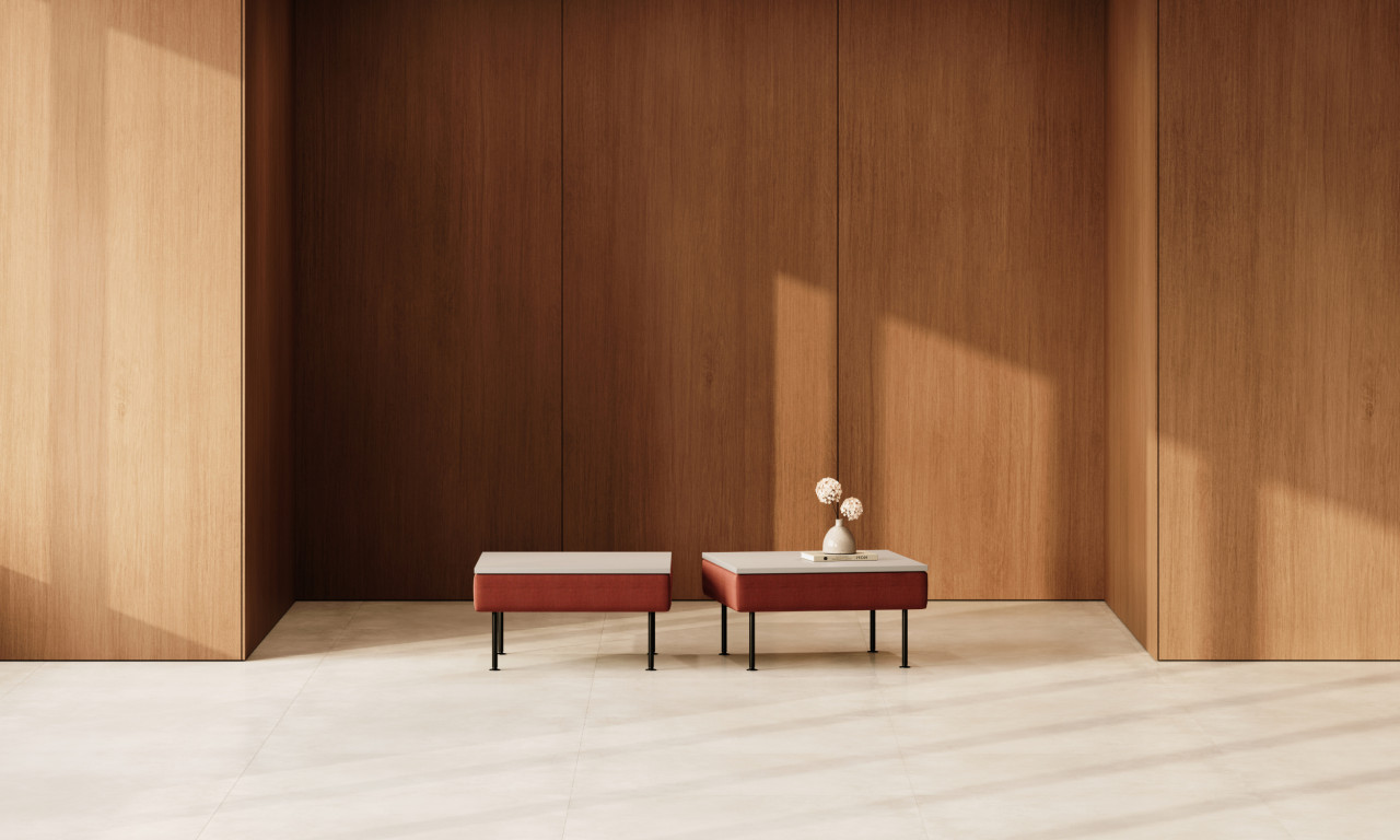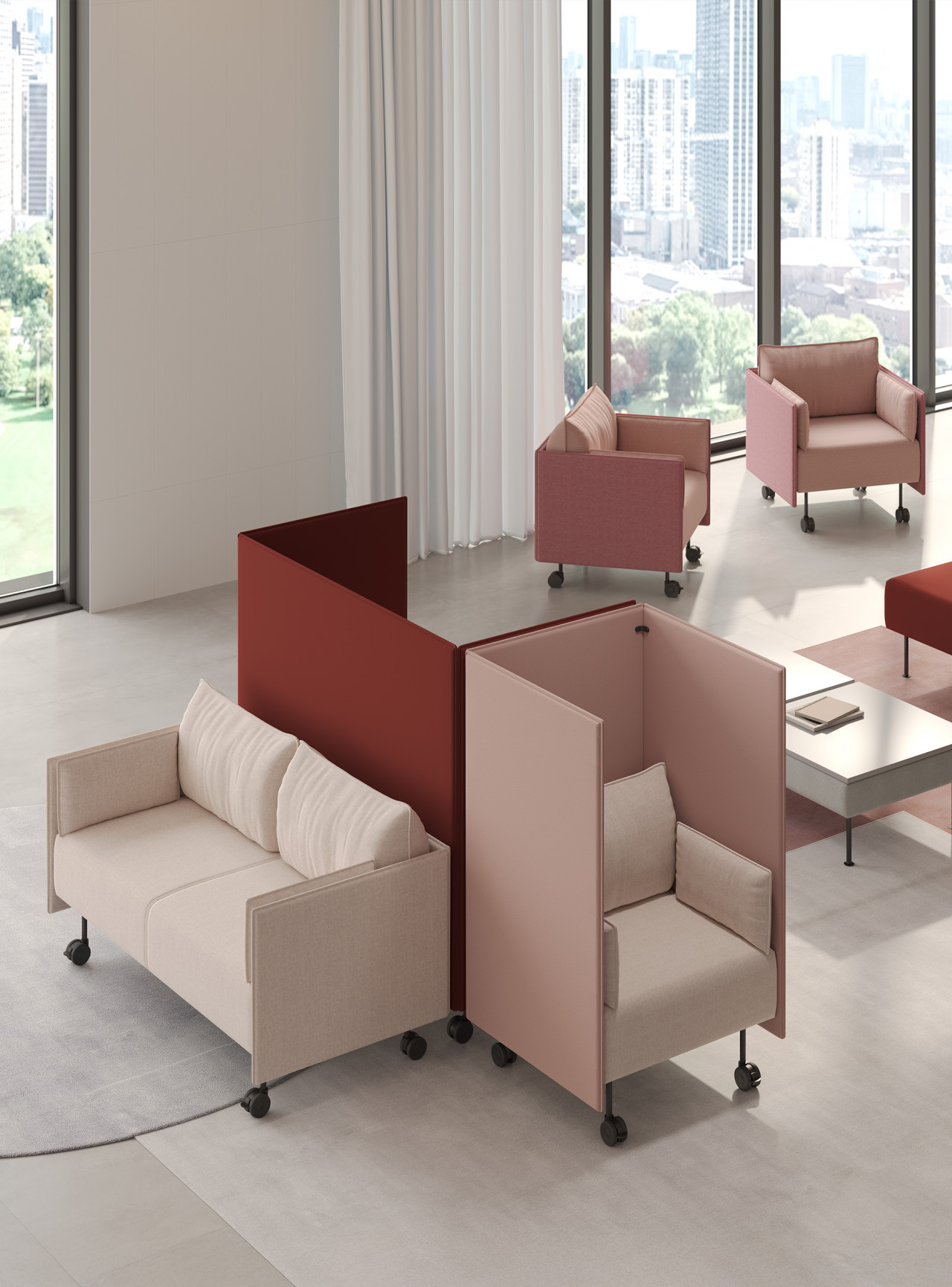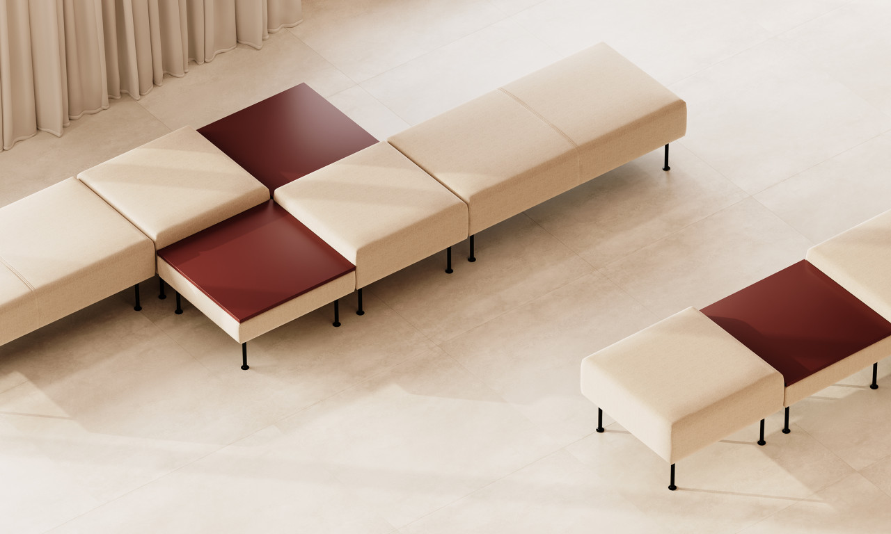 Všechny funkční prvky, jako jsou kabelové svody, akustické panely a elektrifikace, je přizpůsobena mezeře uprostřed desky stolu. Stoly poskytují vše, co by člověk v kanceláři mohl potřebovat, a zároveň se nezapomnělo na jednu z nejdůležitějších věcí: pocit domova.