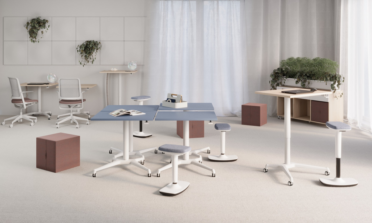 Aero je pneumaticky výškově nastavitelný stůl - řešení pro sezení i stání, který se hodí do různých pracovních prostředí. Je ideální pro agilní prostory určené pro kreativní schůzky, školící místnosti, ale také dokonale podpoří prostory, kde potřebujete chvíli na soustředěnou práci. Tento malý pneumatický stůl se řídí konceptem dynamického pracovního místa, která se snadno přizpůsobí moderním kancelářím i coworkingovým centrům, kde si lidé pronajímají místo k práci, když je to potřeba, a udržují rovnováhu socializací s ostatními, kteří pracují na dálku.